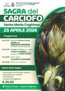 Quest’anno l’appuntamento con l’eccellenza, sua maestà il carciofo spinoso, diventa maggiorenne; nel 2008 il primo appuntamento organizzato dal comune insieme alla Coldiretti e nel 2009 la prima regia della Proloco. Un direttivo sempre presente, che grazie al contributo dei volontari e numerosi aiutanti, è riuscito a mettere in piedi una sagra che di fatto inaugura la stagione primaverile e porta a Santa Maria Coghinas, numerosi turisti stranieri.